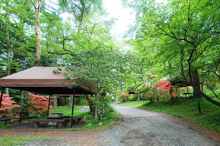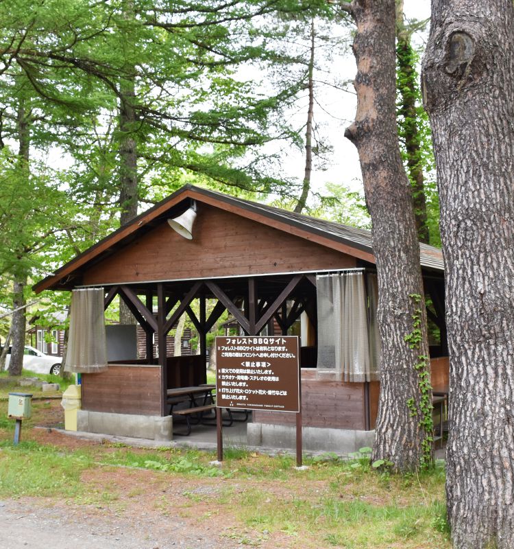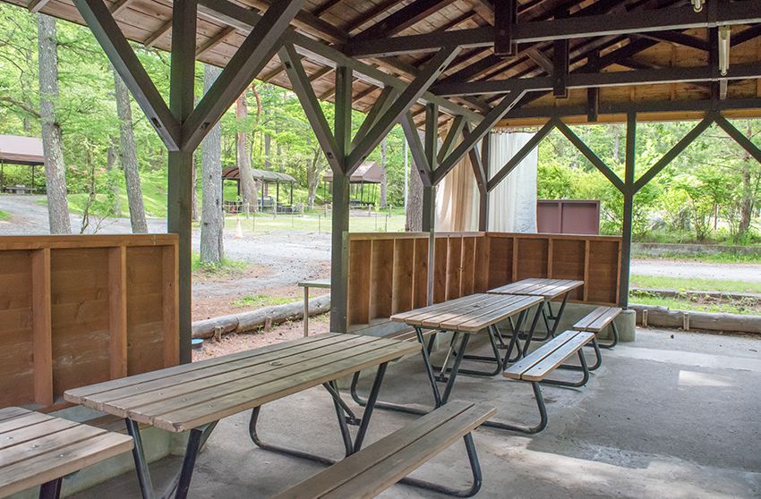 宿泊なしで気軽にバーベキューができる屋根付きのデイキャンプエリア