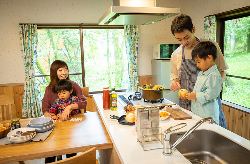 アイランドキッチンを囲んで、家族・友人と楽しく会話を弾ませながら食材の準備をし、