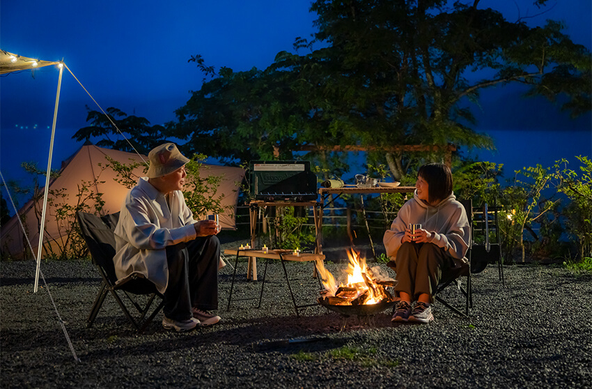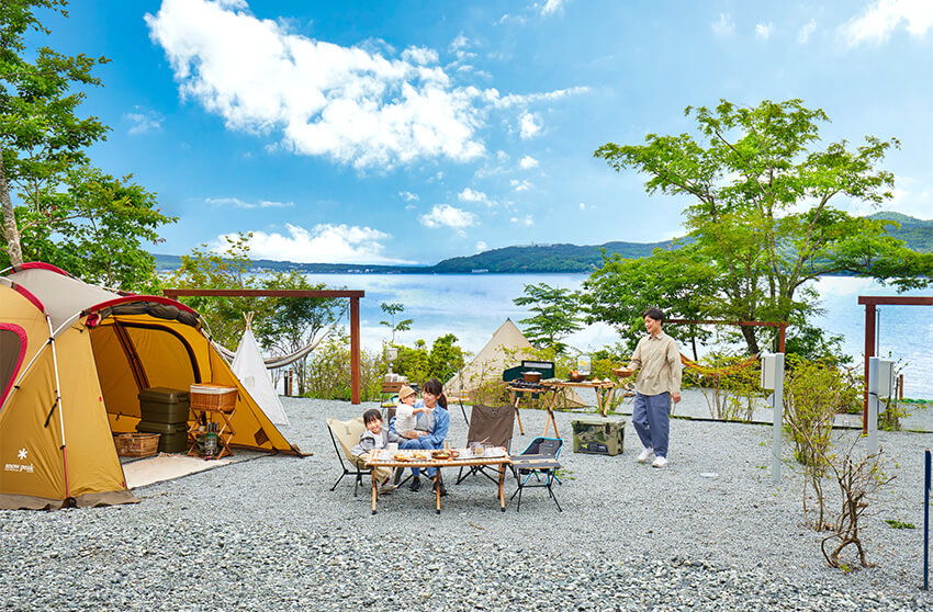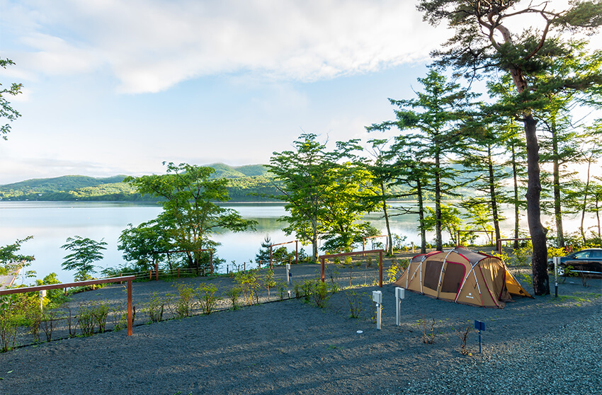山中湖のパノラマを望むことができるオートキャンプサイトです。