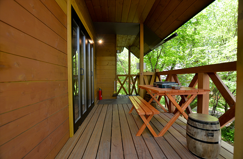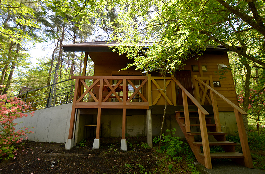 自然に囲まれ森林浴が満喫できる「リーフコテージ」。