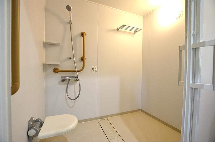 また、介護者の方がご同伴で、車椅子をご使用の場合も対応できるスロープ・トイレ・シャワー・洗面台を設置しています。