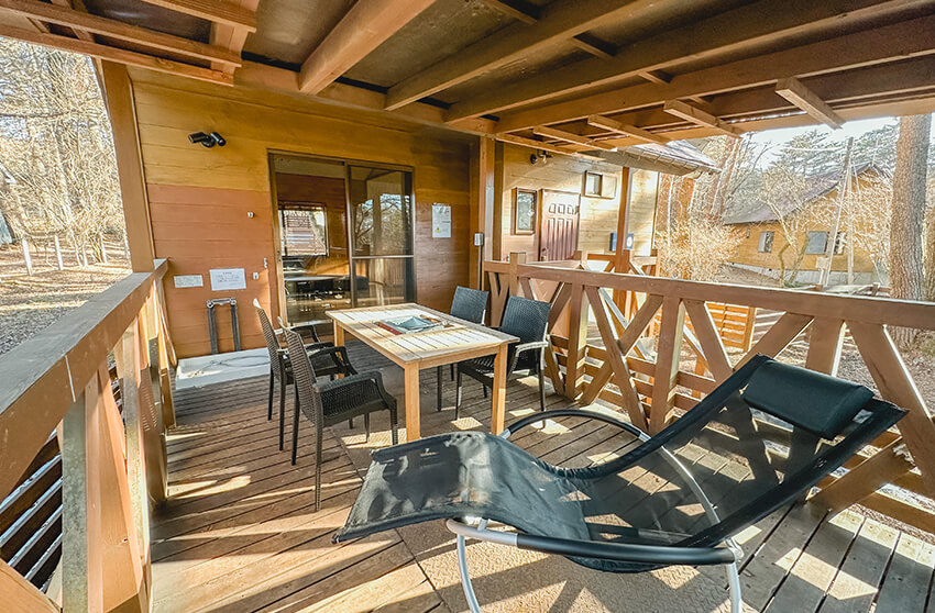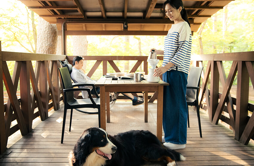 テラスでロッキングチェアに座りながら自然を眺め、ワンちゃんとゆっくりとした時間をすごしませんか。