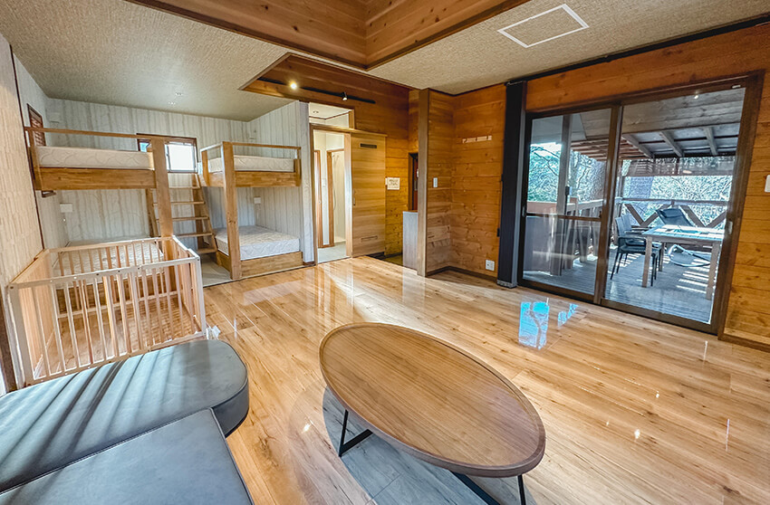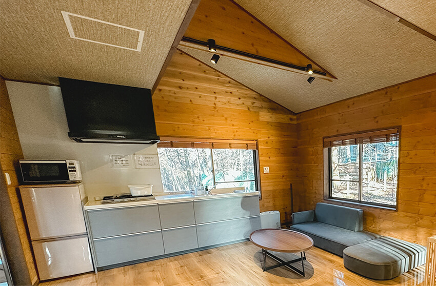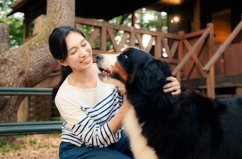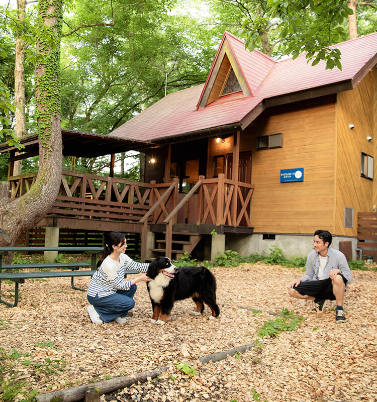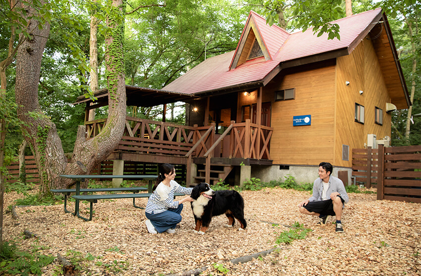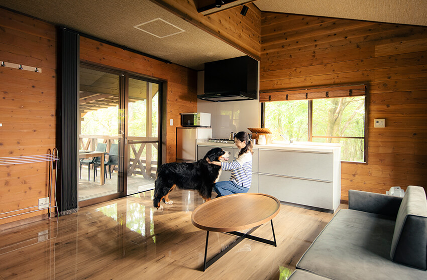 森林に囲まれた空間でプライベート感が味わえる「ドッグランコテージ ルオント」。