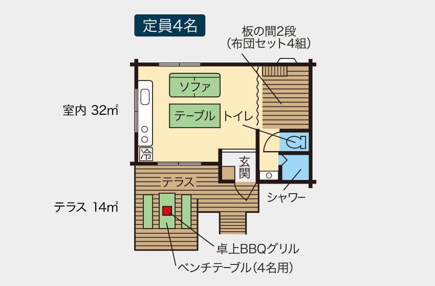 ・1泊1棟(定員数まで)車1台の料金となります。