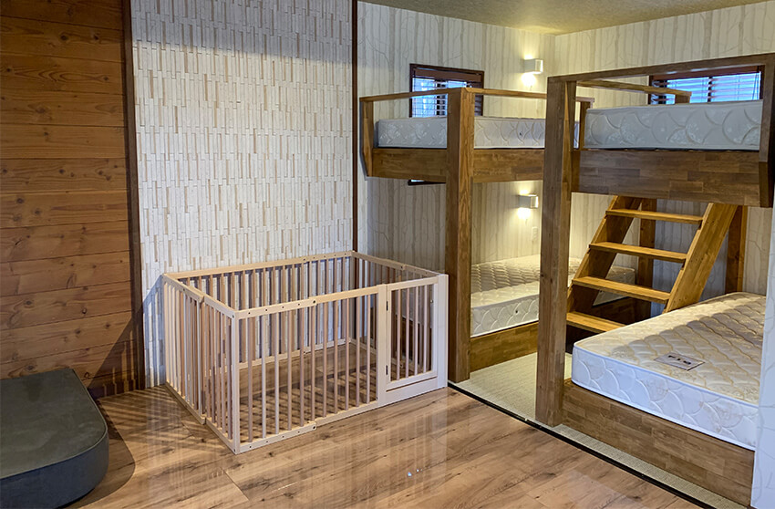 ローソファー、ドッグサークル等を設置しています。