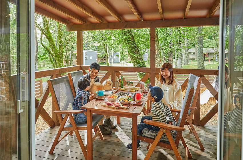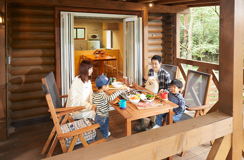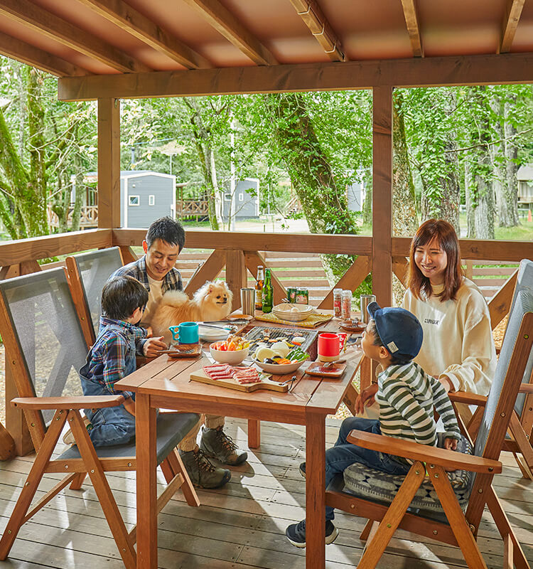 元気に走り回るワンちゃんを見守りながら、木立の風を感じながらテラスでコーヒーやお茶、BBQを楽しみませんか。