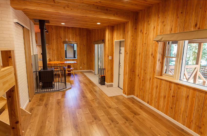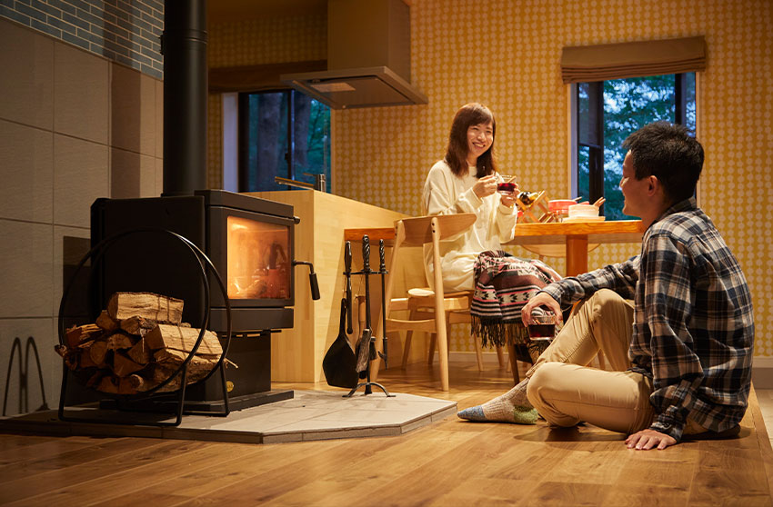また、冬はワンちゃんと一緒に、薪ストーブのまわりで薪をくべ、語り合うひとときを楽しめるコテージです。