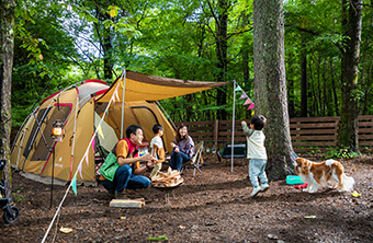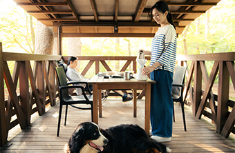 ワンちゃんと一緒にお泊まり。屋根付き大型テラス