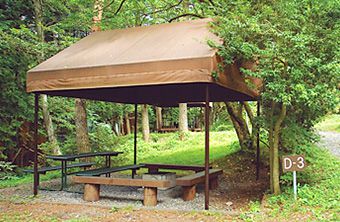 宿泊なしで気軽にバーベキューができる、屋根付きのデイキャンプエリア