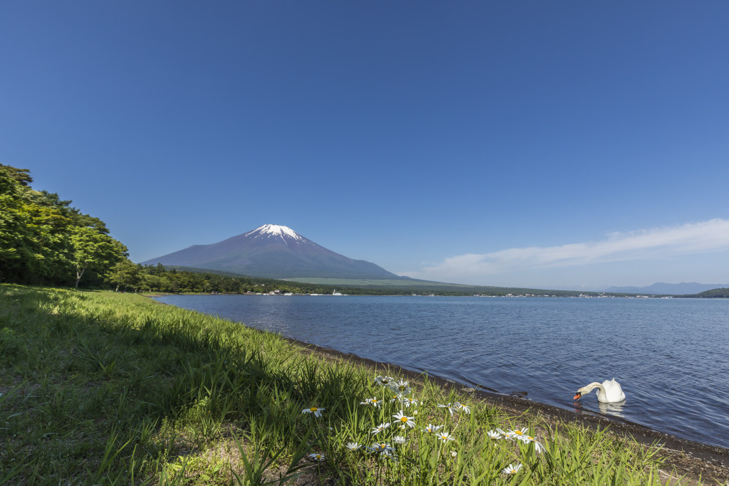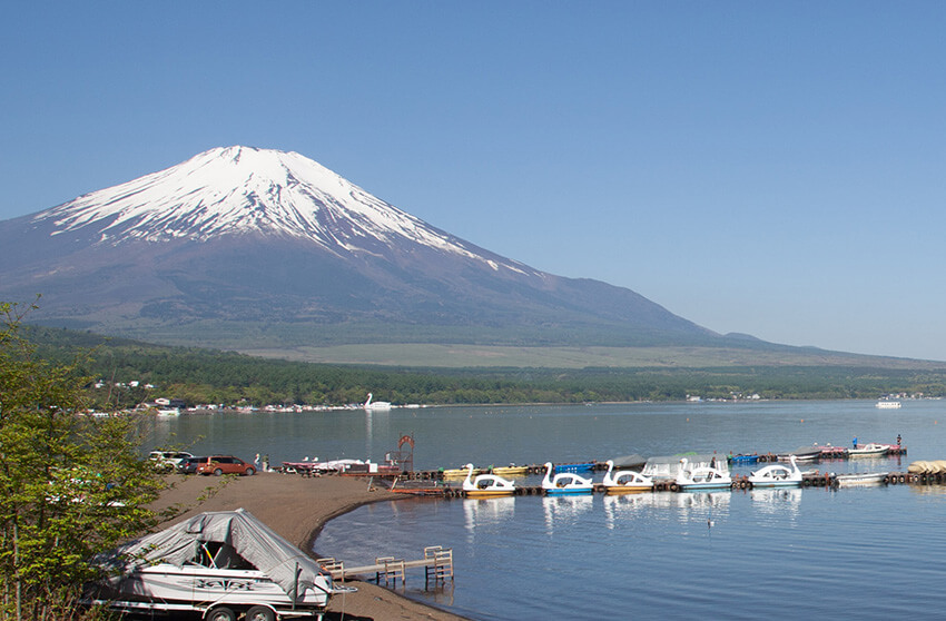 湖越しの雄大な富士山は圧巻!富士山に近いビューポイント。