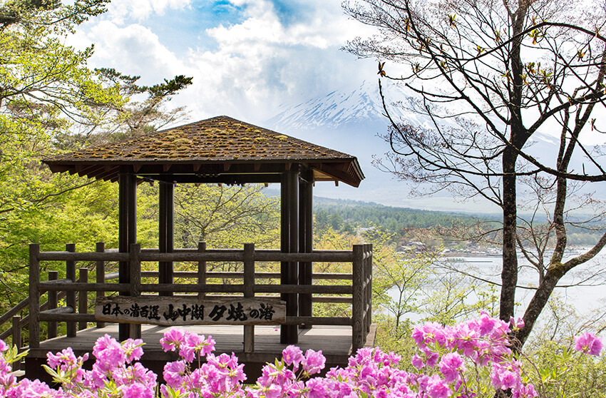 旭日丘湖畔緑地公園内にある展望台で、公園内の散策や富士山と山中湖との広々とした眺望が楽しめます。「日本の渚・百選」に選定され、夕日が映える渚として知られています。