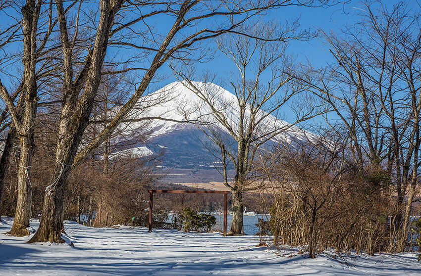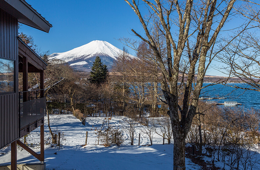 また、11月中旬または2月初旬、眼前の富士山と山中湖畔に映る「逆さ富士」に夕日が沈みはじめる「ダブルダイヤモンド富士」のビュースポット。
