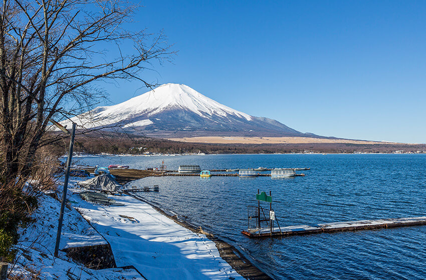 湖越しの雄大な富士山は圧巻!富士山に近いビューポイント。